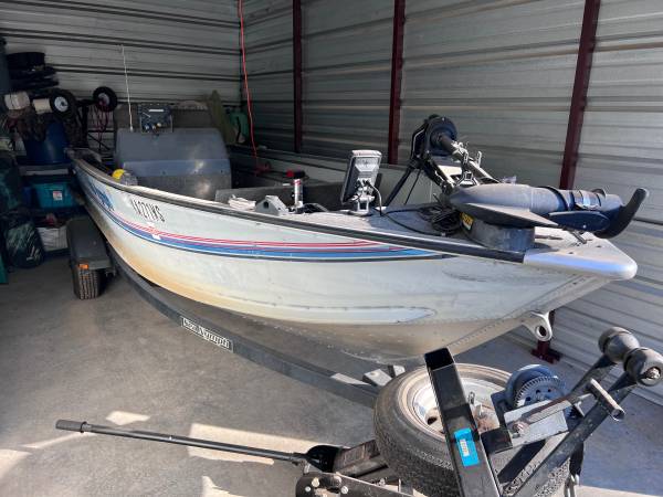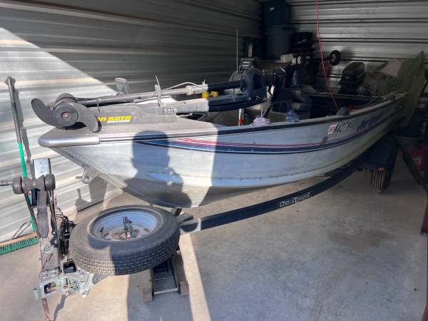 1993 Sea Nymph FM 161 Fishing Boat – 16 ft. Motor and trailer included. Always stored indoors.