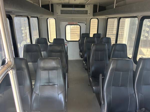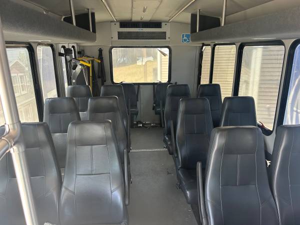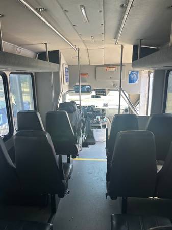 Good condition 14 passenger Shuttle Bus for sale. Forest River Star Craft. Wheel chair set up with electric lift. Lightly used. Under 100,000 miles. Used for transporting college students. Service records. Clean interior. Minor scratches and wear. Runs great. Must see. Call show contact info