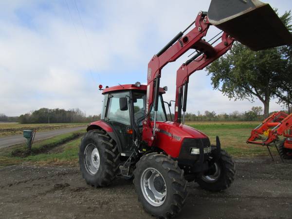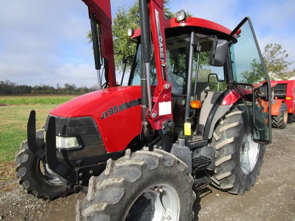 2008 CaseIH JX95 tractor, 4wd, only 1236 hours, 93 horsepower, 12 speed w/ mechanical shuttle, 3 point hitch, 2 rear hydraulic remotes, 540 & 1000 pto, cab, air, heat, stereo, diff lock, grill guard, radial tires, rear 18.4R30 @85%, front brand new 12.4R24. Comes with a CaseIH L730 loader with joystick, mid valve and 6' HD global quick attach bucket. Pre-Emissions. No DEF. No Re-Gen. Nice tractor, runs and works great. $36,500. Trades welcome. Financing and delivery available. Lots of tractors and equipment at bnttractor.com