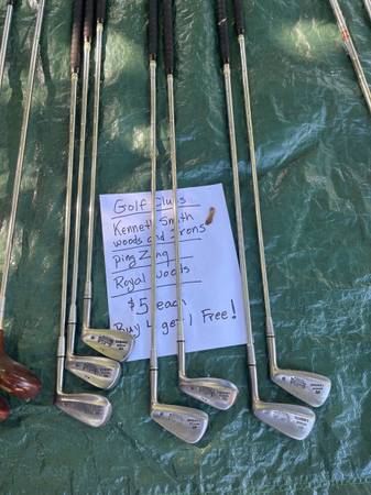 Kenneth Smith irons and woods, Ping Zing irons, Royal woods $5 each or 5/ $20